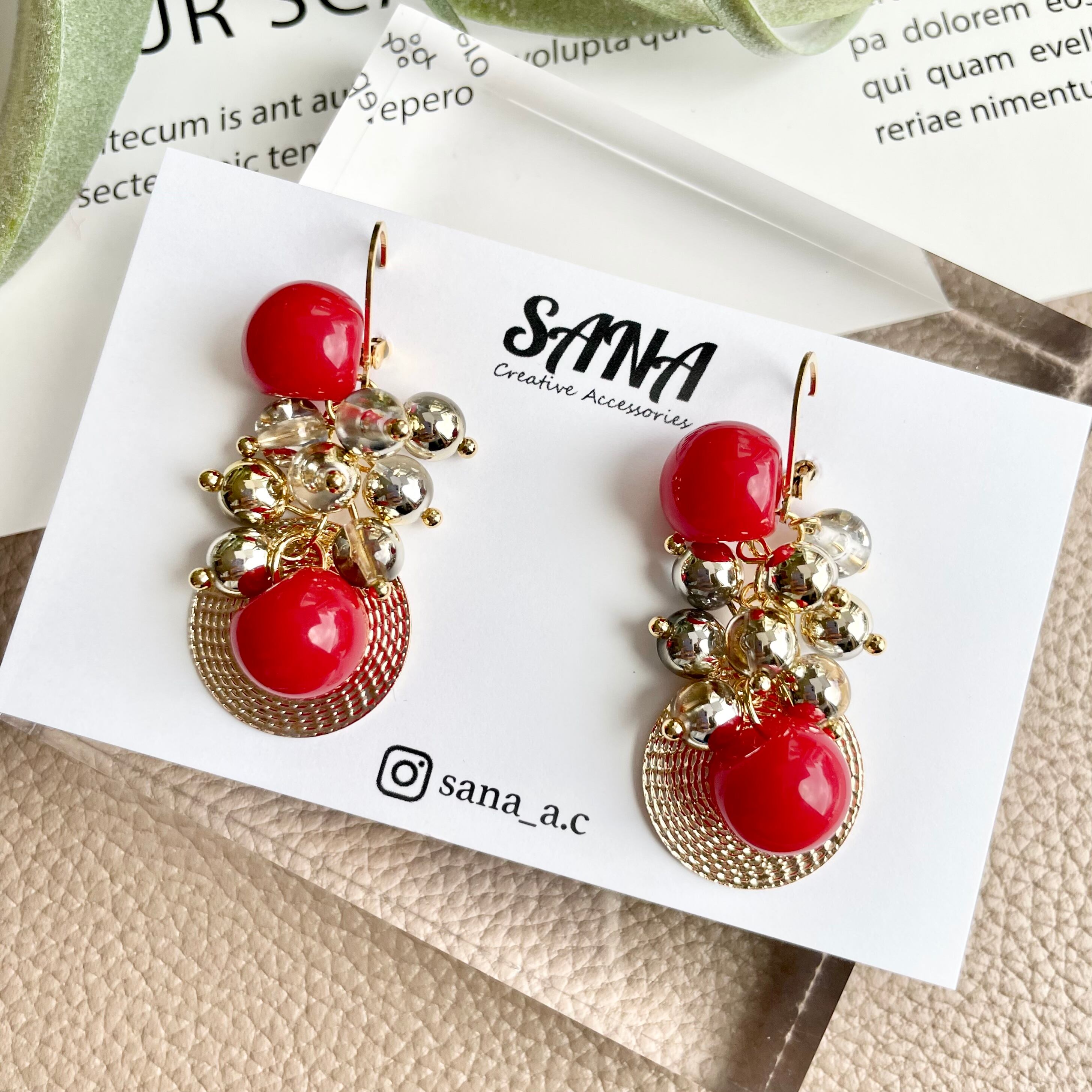 ダブルフェイス小粒ビーズ×鈴丸 デザインピアス