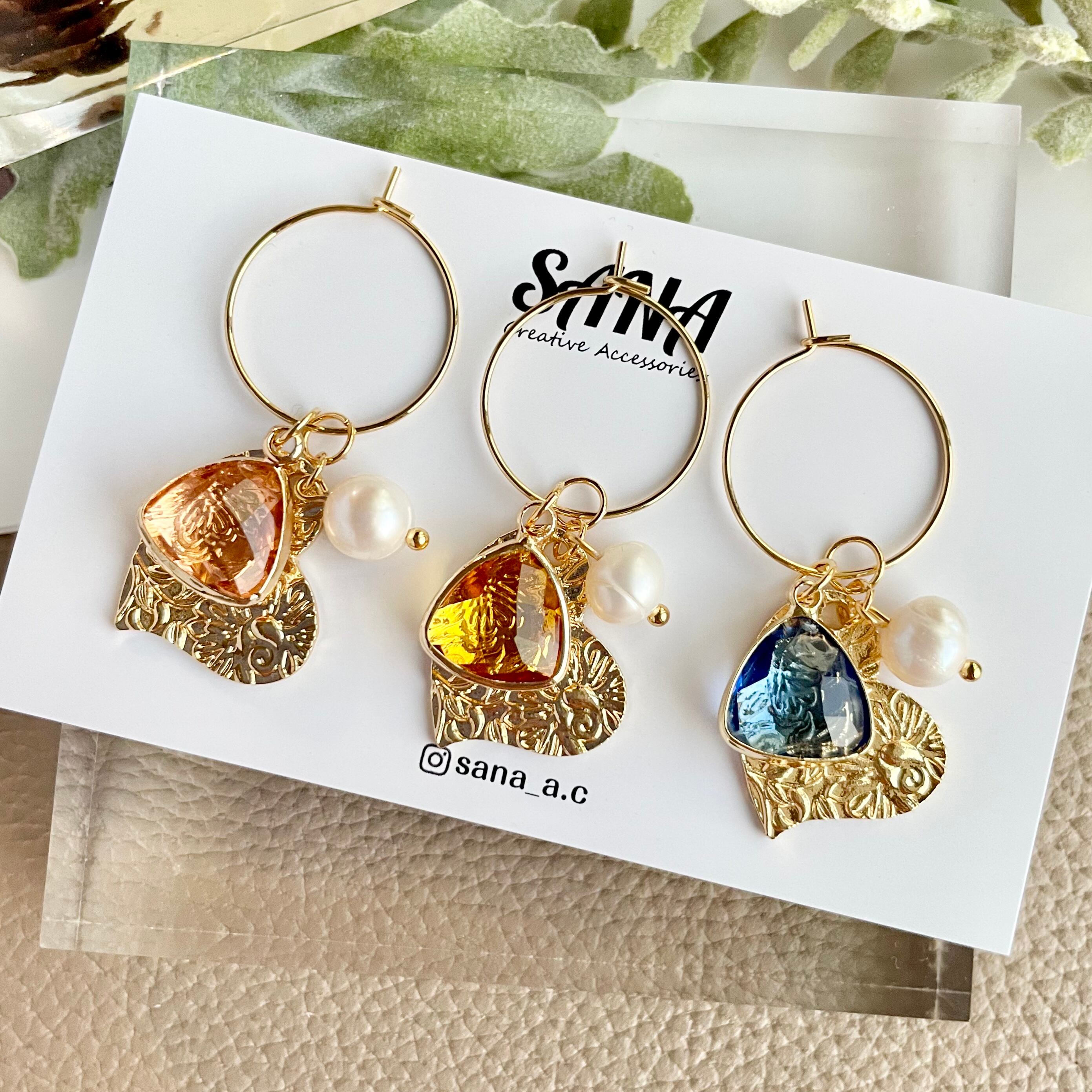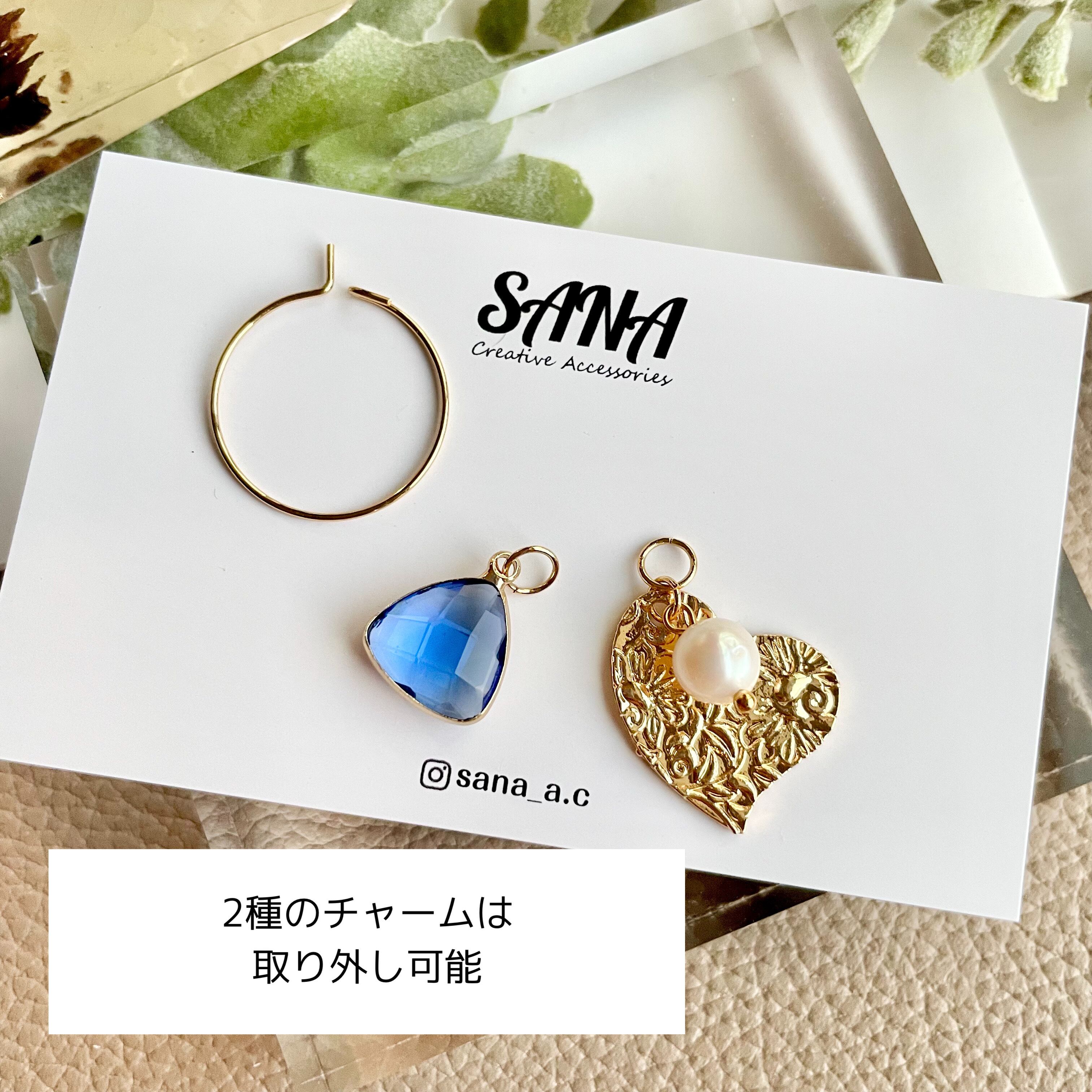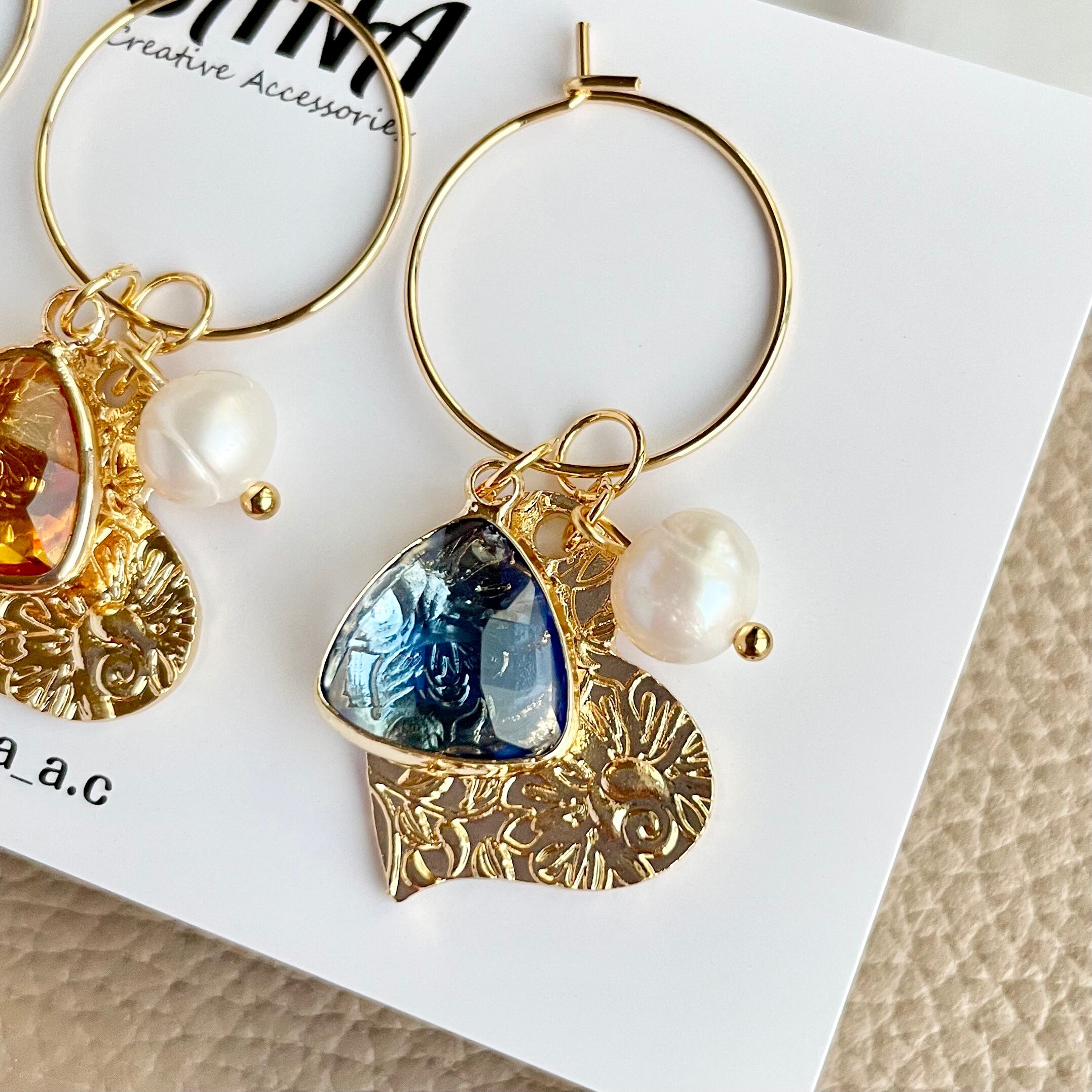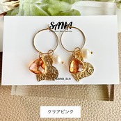 4way ガラスチャーム×ハート ワイヤーピアス