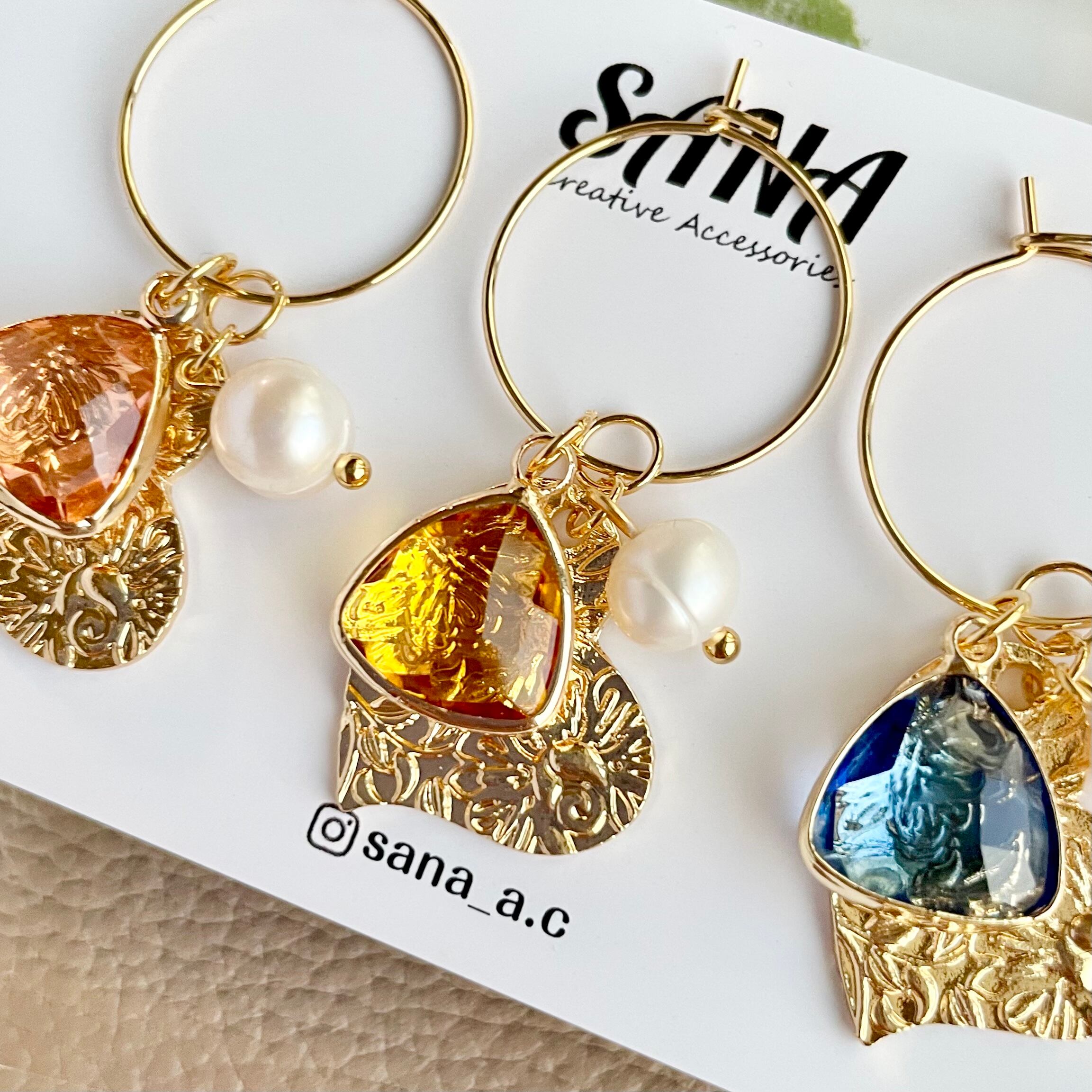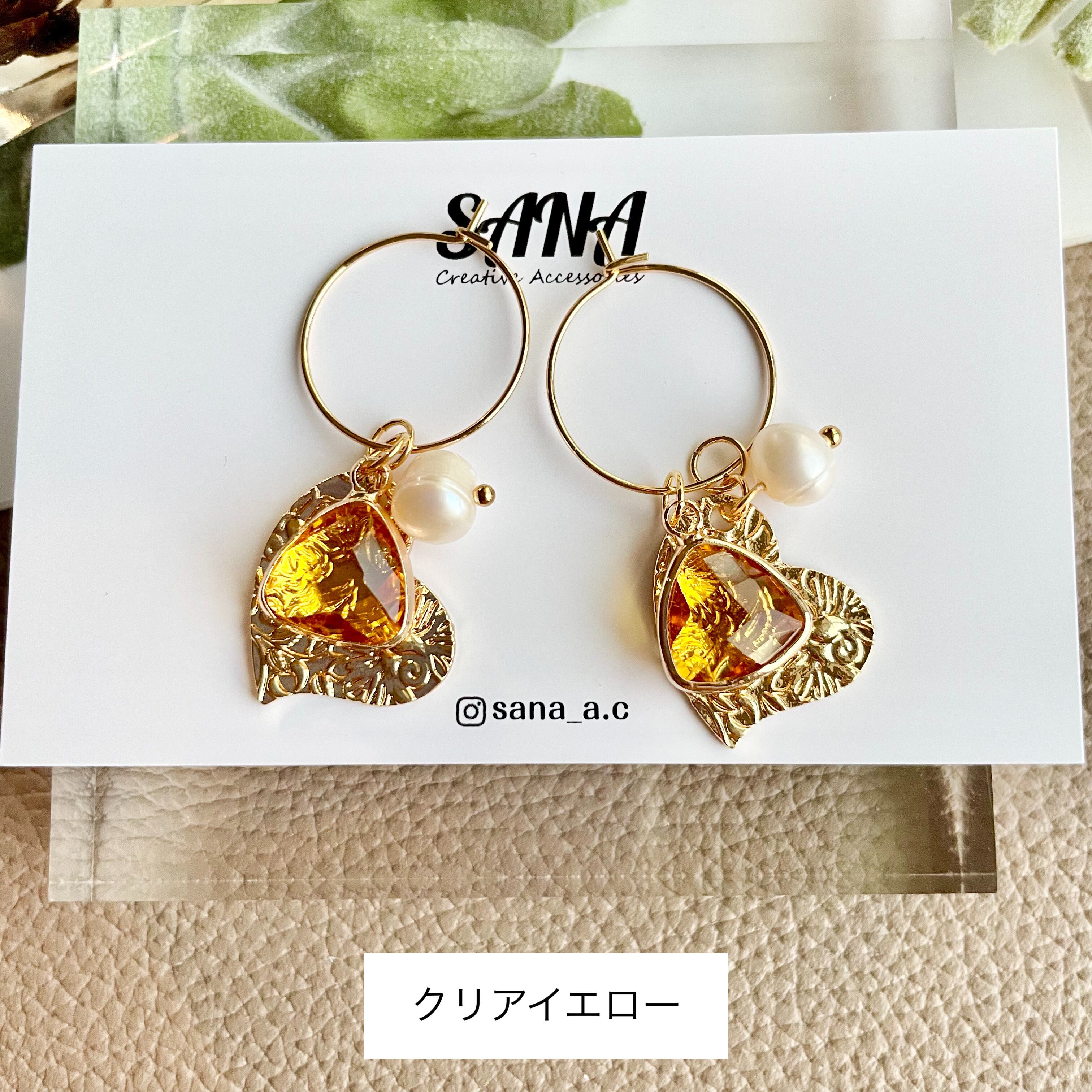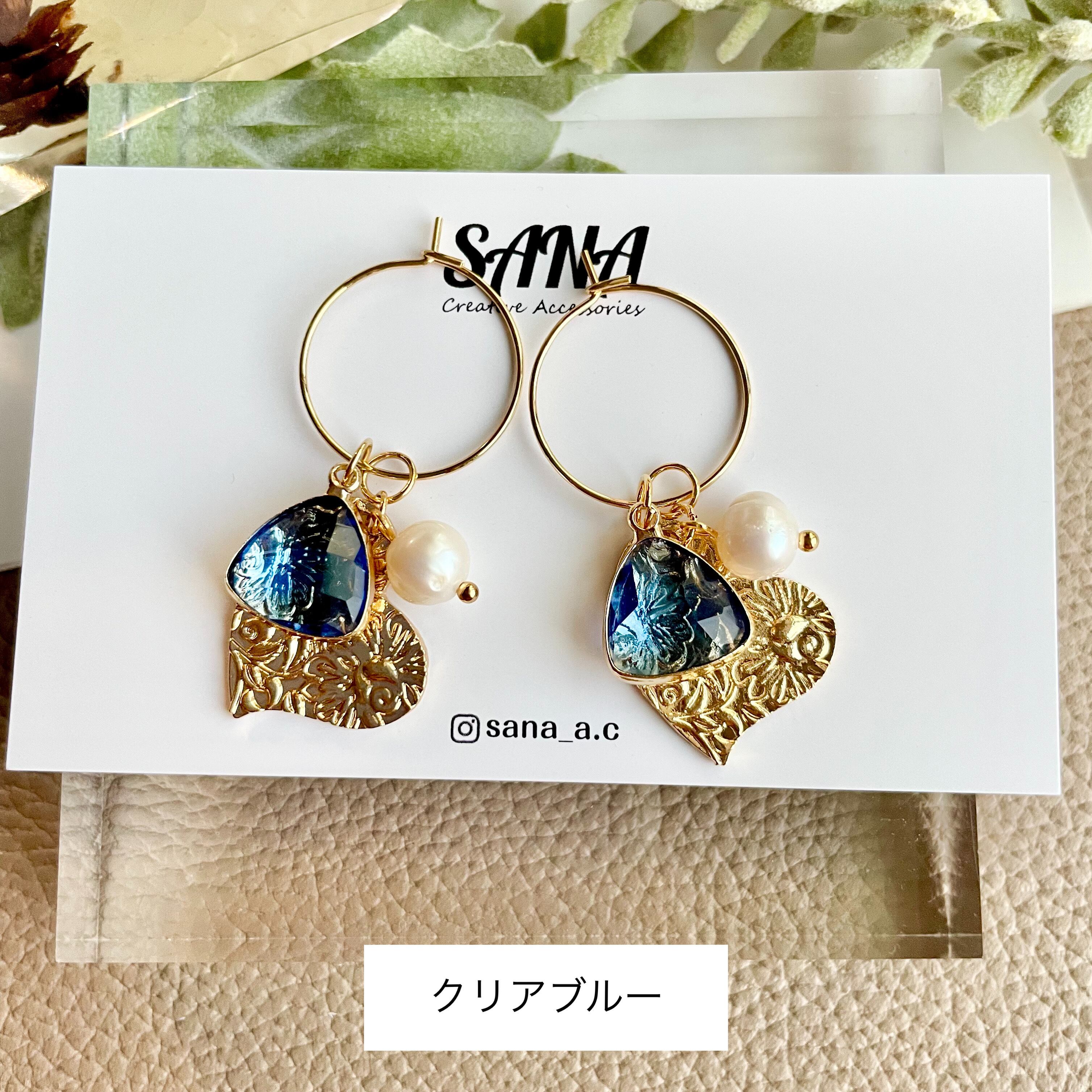 4way ガラスチャーム×ハート ワイヤーピアス