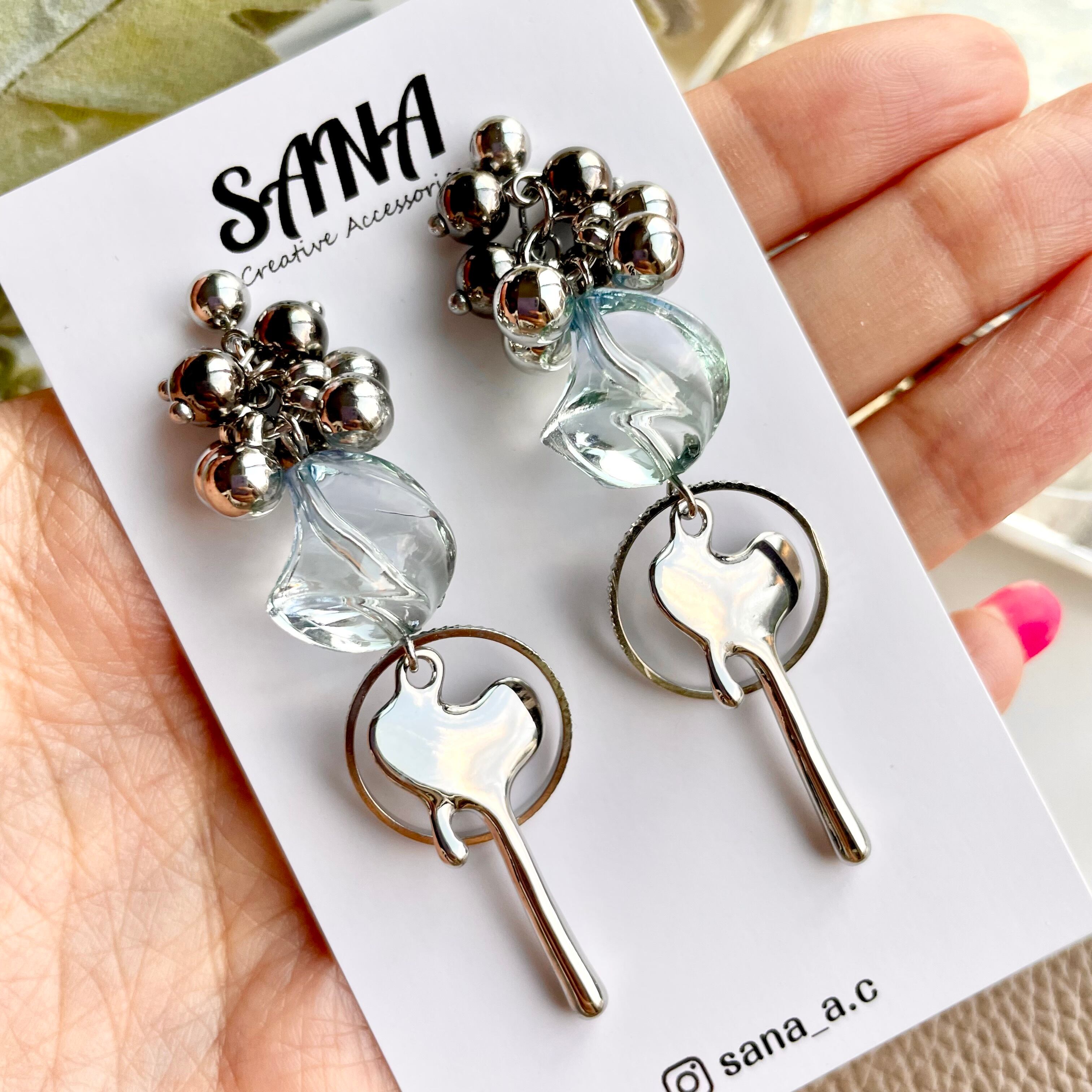 再販!染めグラデーション ひねりビーズ × とろけるハート ピアス